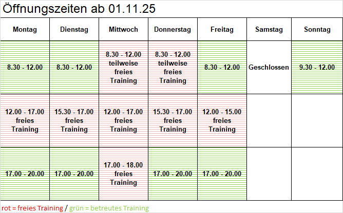 ab Sonntag, den 02.11.2025, wieder geöffnet haben.